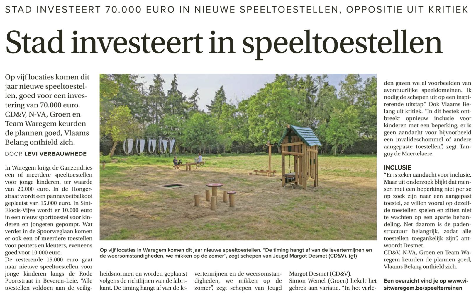 Tanguy de Maertelaere (Vlaams Belang-Waregem) haalde in de gemeenteraad van 13 januari scherp uit naar het stadsbestuur omdat inclusie voor kinderen met een beperking opnieuw niet werd vastgelegd in een concreet en bindend beleid. De Maertelaere verwees daarbij naar een eerdere tussenkomst van vorig jaar waarin hij expliciet had gevraagd om bij nieuwe speeltoestellen structureel rekening te houden met kinderen met een beperking, bijvoorbeeld via aangepaste schommels of andere inclusieve voorzieningen. Volgens hem was dit dossier precies het soort toekomstig project waarvan hem eerder werd beloofd dat zijn opmerkingen zouden worden meegenomen.