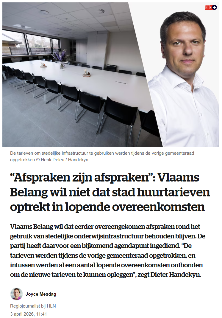 Op de komende gemeenteraad vraagt de Vlaams Belang-fractie de stemming over het nieuwe reglement voor het gebruik van stedelijke onderwijsinfrastructuur, dat vorige maand werd goedgekeurd.